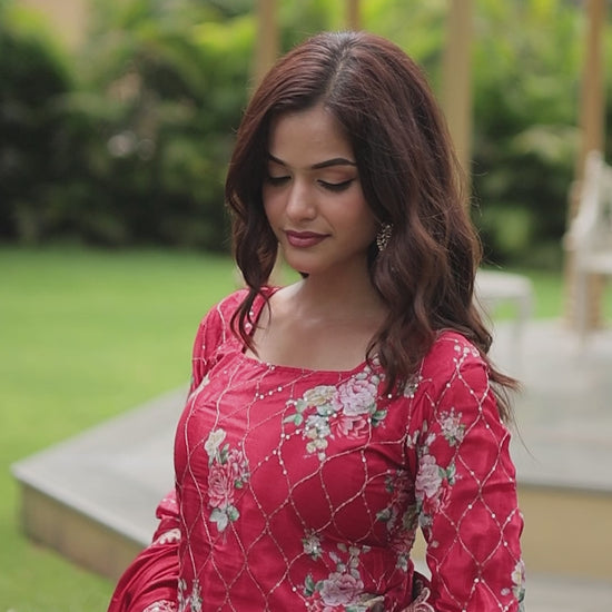 Fabric & Work: Chinon Printed with Sequins & Thread Embroidered Work