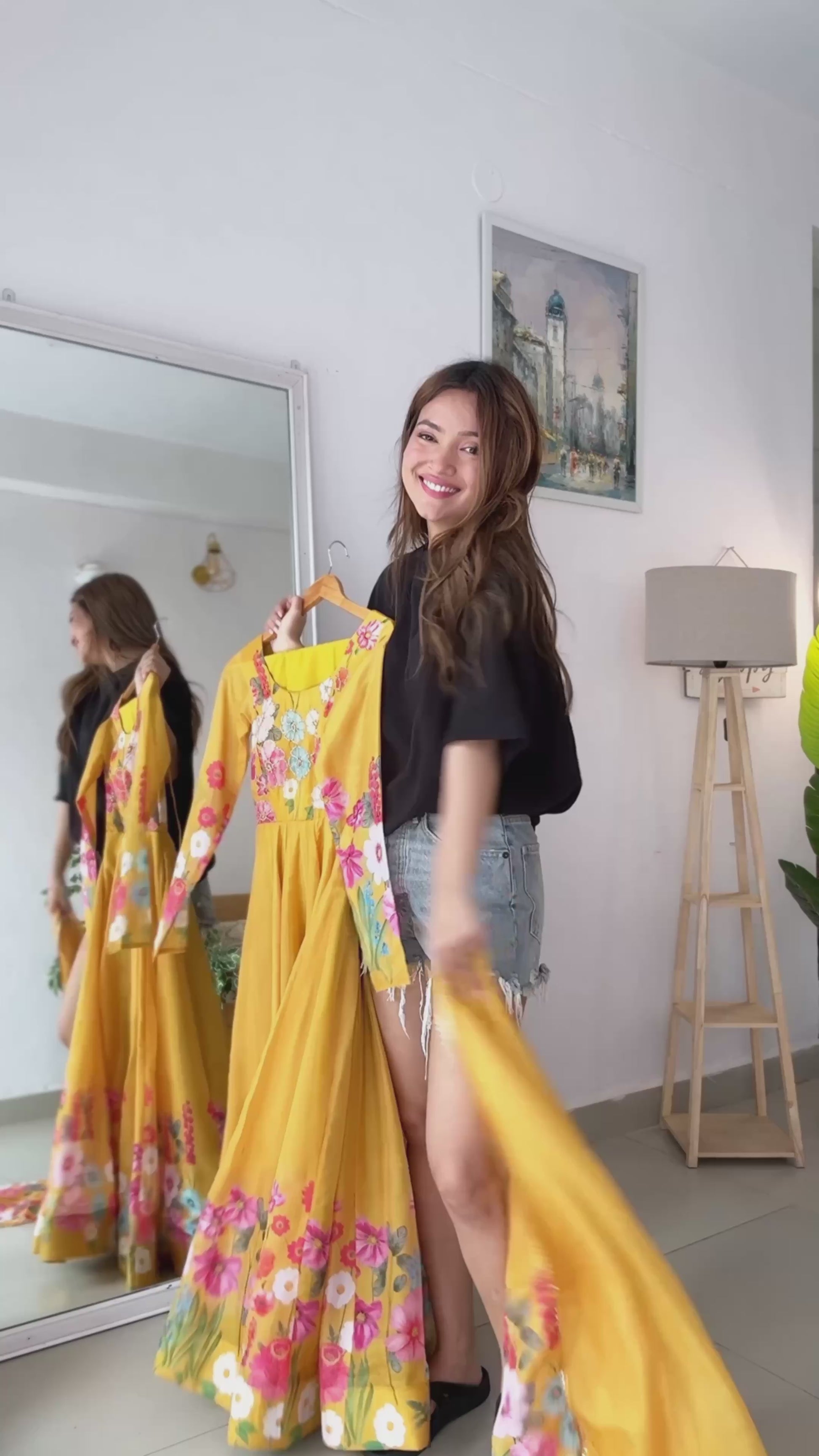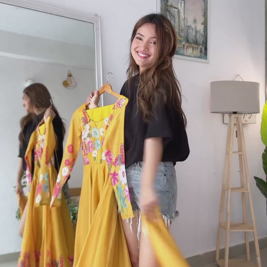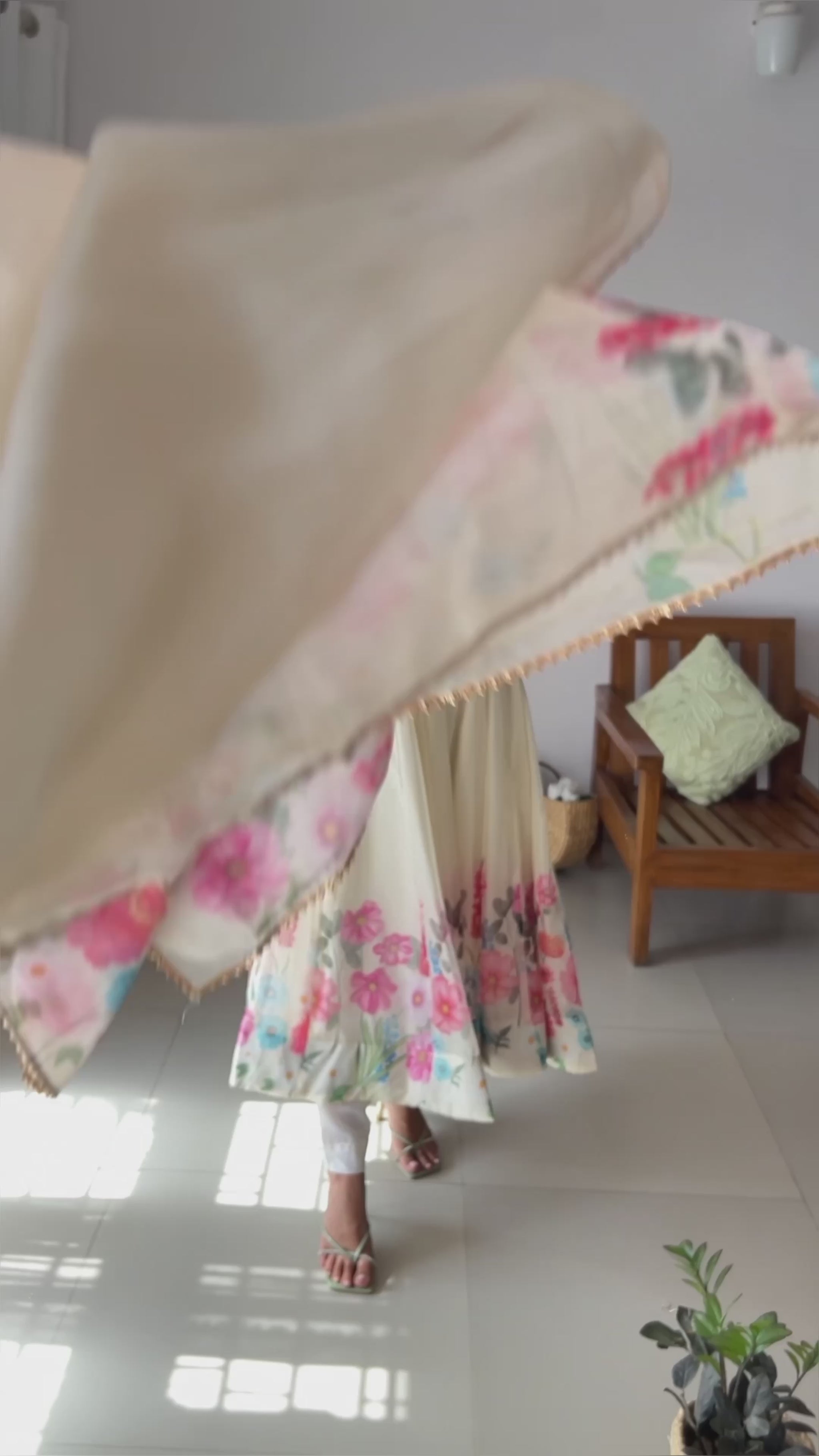 GOWN FLAIR: 4 MTR APPORX FLAIR WITH KALI CUT ATTACHED COMPLETE WITH CANVAS PATTA