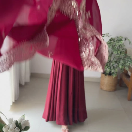 16 KALI GOWN, FULL CHURIDAR SLEEVES ,PADDED, SIDE ZIPPER, WORK DUPPTA