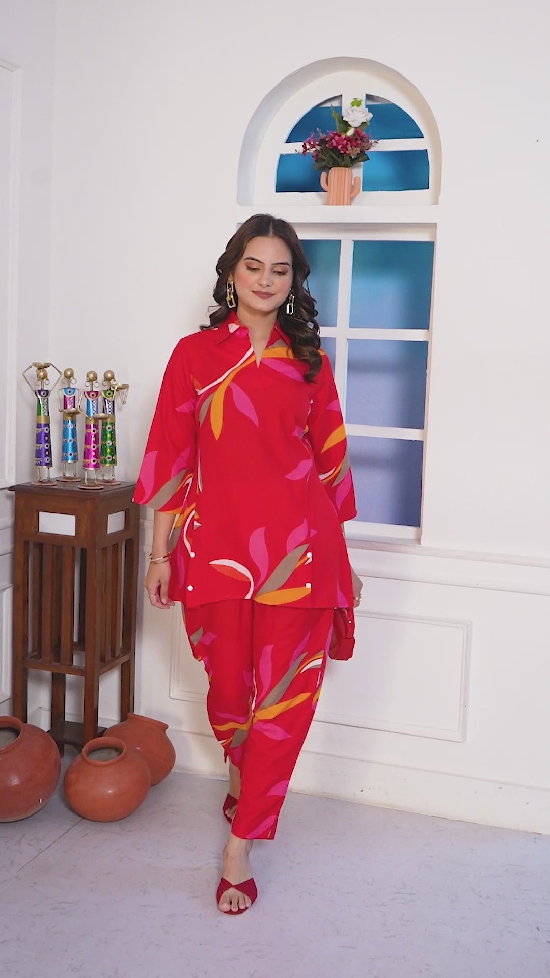 Comfortable co-ordinated top and pants for a bold yet graceful everyday look
