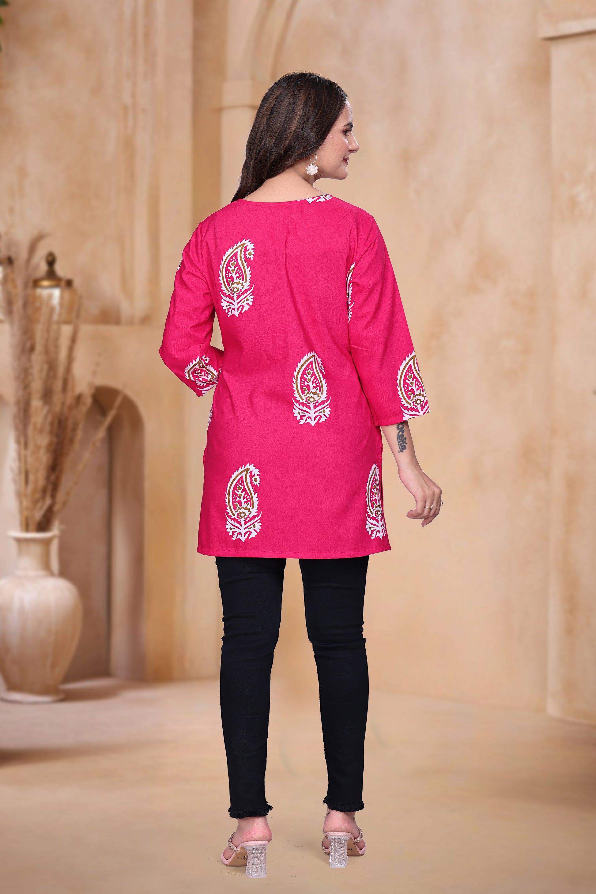 Style Tip: Match with black cigarette pants and statement earrings for a chic ethnic-fusion vibe